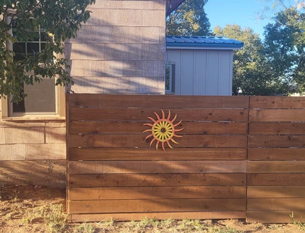 My mother-in-law didn’t want this sun (it came with the house), so I gladly took it off her hands. And now it’s adding bright happiness to our new fence! Yay for a free decoration!