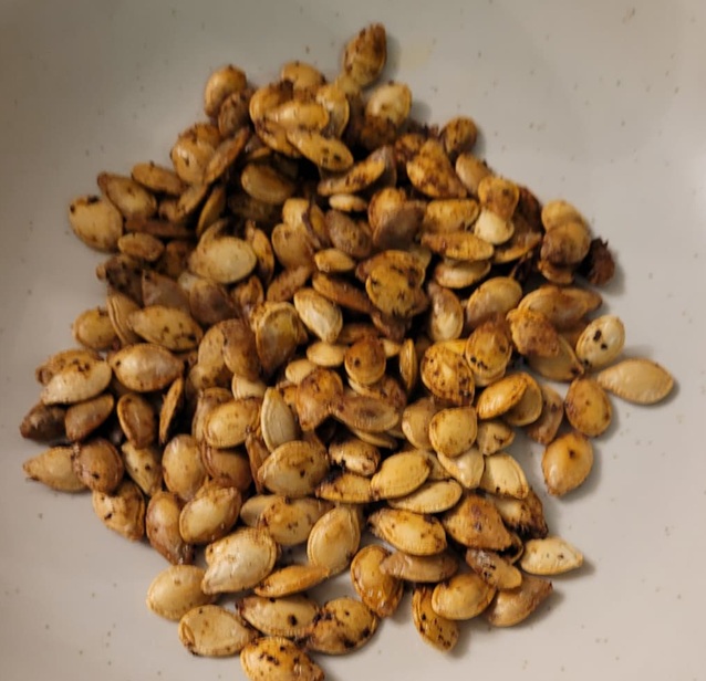 After cooking some spaghetti squash (side note: can I just say steaming up a squash, then it magically turning into spaghetti is rad to the max! So thankful for God making our food in such a variety of ways)…okay, so anyway, after cooking the squash I oven roasted the seeds following this recipe as a guideline.