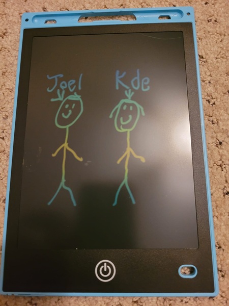 I looked over to see my nephew had drawn this picture of us, love the way he sounded out my name. 🙂