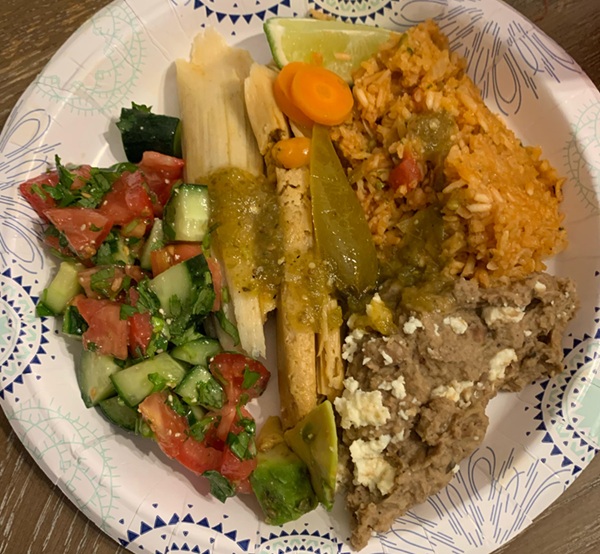 We had offered to bring tamales to the family Christmas gathering, so after my daughter and husband had prepped the meat and masa, Sunday we all worked together to roll the tamales. This was a first for me, last year my husband and daughter did all the tamale making. They turned out fantastic!
