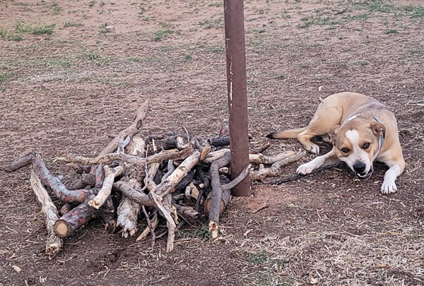 One of his hobbies is picking a really good chewing stick from the woodpile and going to town on it!