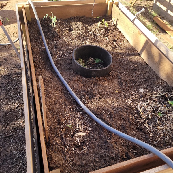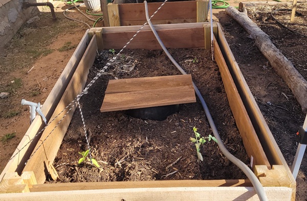 Same garden bed, different angle and with wood covering the worm hole. Click the link above to watch a video on how to have someting like this in your garden bed.